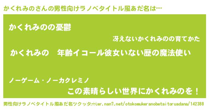 | 女子向けラノベタイトル風あだ名 | 『かくれみのの玉の輿計画!』 |