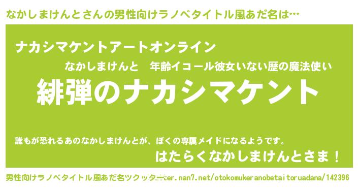 | 胡散臭い通販商品みたいなあだ名 | 『必ず成功するブレスレット…その名も「なかしまけんと」』 |