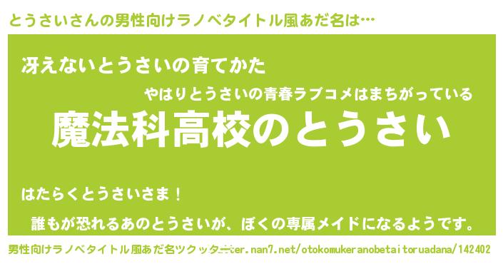 | 女子向けラノベタイトル風あだ名 | 『とうさいアンティーク』 |