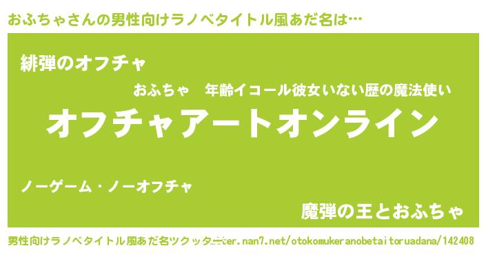 | 胡散臭い通販商品みたいなあだ名 | 『モテモテ間違いなしブレスレット…その名も「おふちゃ」』 |