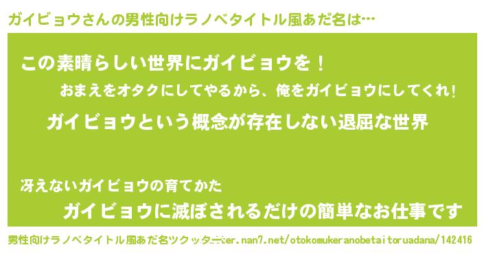| ヘコむあだ名 | 『ガイビョウ(小並感)』『ガイにゅー』 |