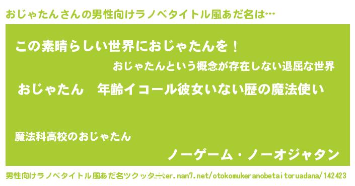 | 胡散臭い通販商品みたいなあだ名 | 『あなたにだけ特別に提供する限定10本のレアな日本酒…その名も「おじゃたん」』 |