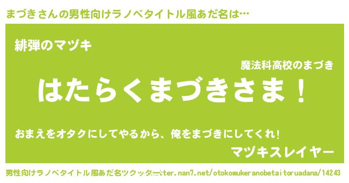 | ヒーロー風カッコイイあだ名 | 『ウルトラ戦士マヅキ』『魔戒騎士マヅ』 |