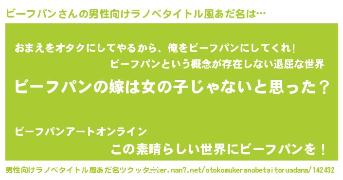| 女子向けラノベタイトル風あだ名 | 『ビーフパン様がみてる』 |