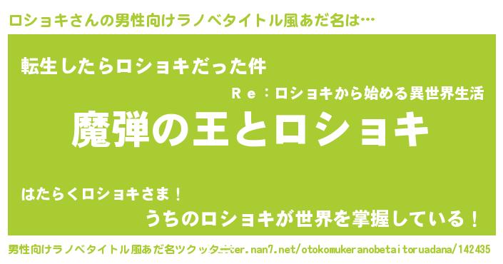 | 意味不明あだ名 | 『住所不定無職ロショキ(41歳)』 |