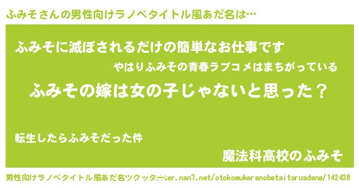 | 女子向けラノベタイトル風あだ名 | 『ふみそ様がみてる』 |