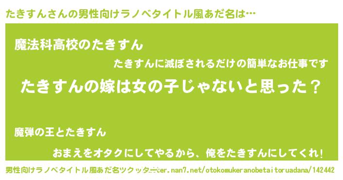 | 女子向けラノベタイトル風あだ名 | 『たきすん様がみてる』 |