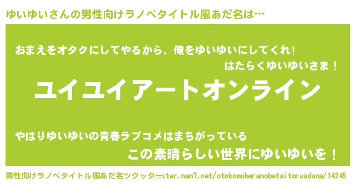 | 胡散臭い通販商品みたいなあだ名 | 『モテモテ間違いなし霊験あらたかなお札…その名も「ゆいゆい」』 |