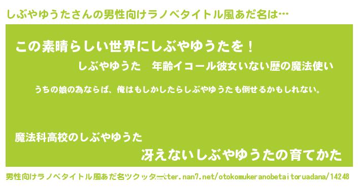 | 女子向けラノベタイトル風あだ名 | 『しぶやゆうたの婚約者』 |