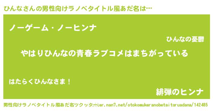 | 女子向けラノベタイトル風あだ名 | 『ひんなの雑貨屋さん』 |