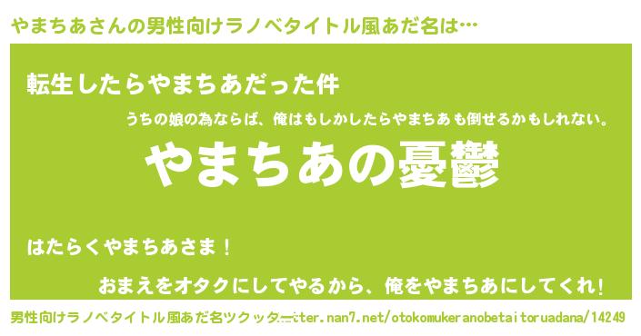 | 胡散臭い通販商品みたいなあだ名 | 『必ず成功する水晶球…その名も「やまちあ」』 |