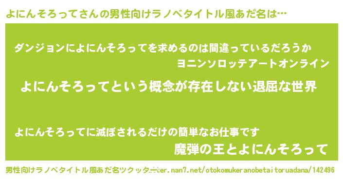 | ヘコむあだ名 | 『よにんそろって(小並感)』『よにっちょ』 |