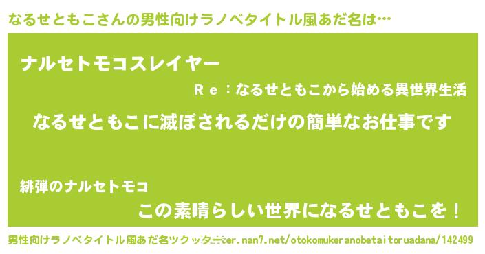 | ヘコむあだ名 | 『なるせともこ(震え声)』『なるっぺ』 |