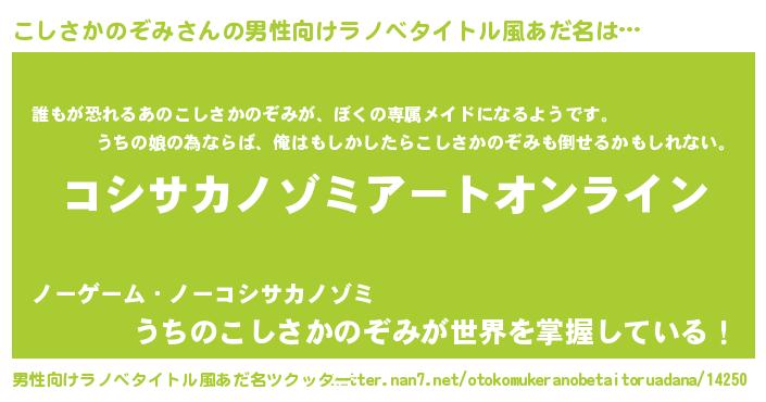 | 胡散臭い通販商品みたいなあだ名 | 『億万長者になれる霊験あらたかなお札…その名も「こしさかのぞみ」』 |