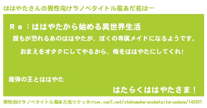 | ヘコむあだ名 | 『ははやた(苦笑)』『ははっ子』 |