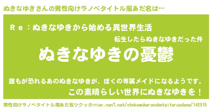 | 胡散臭い通販商品みたいなあだ名 | 『モテモテ間違いなし霊験あらたかなお札…その名も「ぬきなゆき」』 |