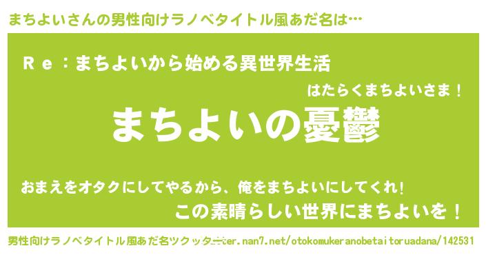 | 胡散臭い通販商品みたいなあだ名 | 『必ず成功するブレスレット…その名も「まちよい」』 |