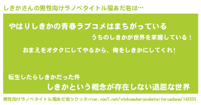 | 女子向けラノベタイトル風あだ名 | 『しきか恋絵巻』『しきか伯爵の花嫁』 |