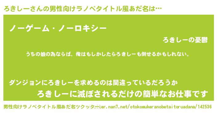 | 女子向けラノベタイトル風あだ名 | 『ろきしーの婚約者』 |