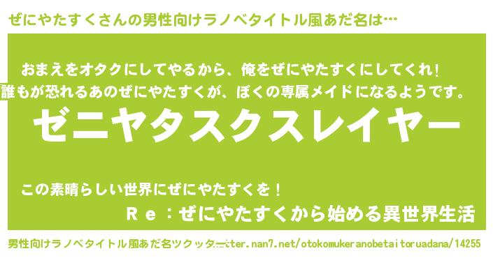| 料理風あだ名 | 『ぜにやたすくごはん』 |