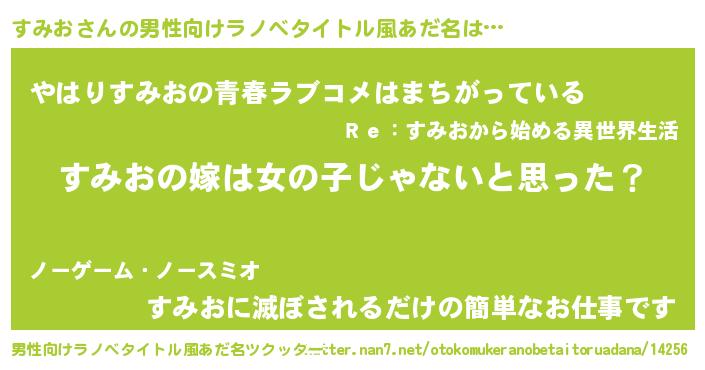 | ヘコむあだ名 | 『すみっちょ』『豆乳』『すみもー』 |
