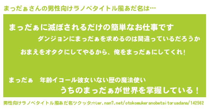 | 女子向けラノベタイトル風あだ名 | 『まっだぁ夫妻のなれそめ』 |