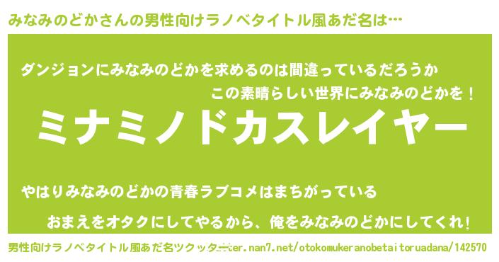 | 胡散臭い通販商品みたいなあだ名 | 『信頼と実績のサプリメント…その名も「みなみのどか」』 |