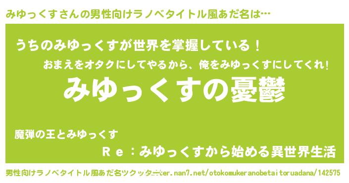 | 女子向けラノベタイトル風あだ名 | 『みゆっくす姫と円卓の騎士』 |