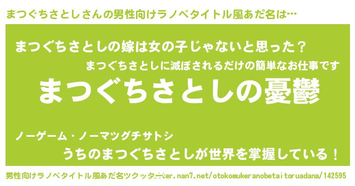 | 胡散臭い通販商品みたいなあだ名 | 『必ず成功するブレスレット…その名も「まつぐちさとし」』 |