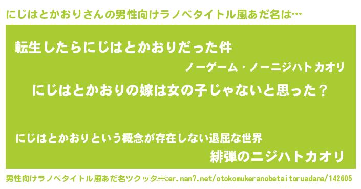 | 女子向けラノベタイトル風あだ名 | 『にじはとかおり様がみてる』 |