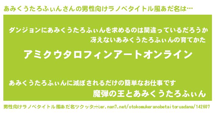 | 胡散臭い通販商品みたいなあだ名 | 『億万長者になれる水晶球…その名も「あみくうたろふぃん」』 |