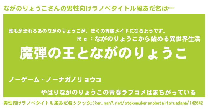 | 女子向けラノベタイトル風あだ名 | 『乙女ゲームの破滅フラグしかない悪役ながのりょうこに転生してしまった…』 |