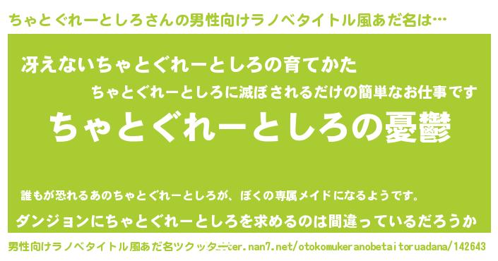 | 女子向けラノベタイトル風あだ名 | 『ちゃとぐれーとしろ姫と円卓の騎士』 |