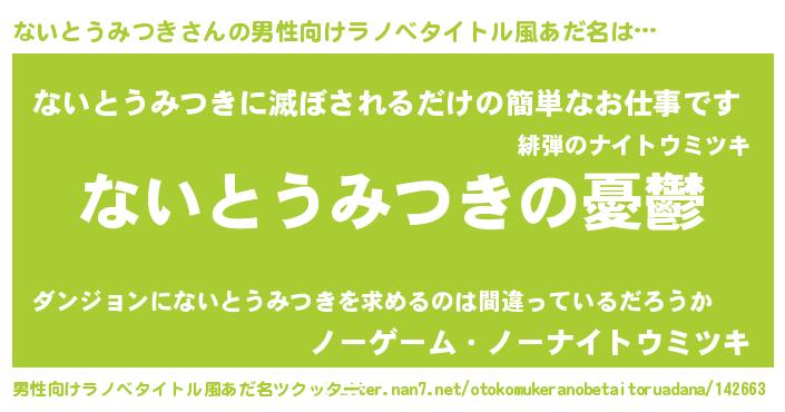 | 女子向けラノベタイトル風あだ名 | 『(仮)ないとうみつきのやんごとなき事情』 |
