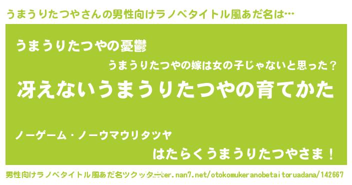 | ヒーロー風カッコイイあだ名 | 『スーパーウマウリタツヤ』 |