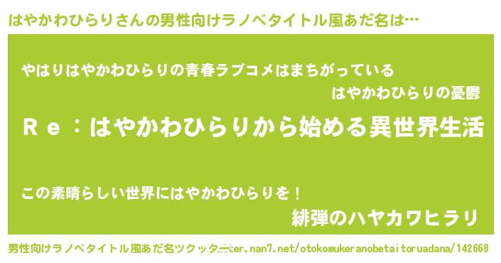 | 意味不明あだ名 | 『自称はやかわひらり』 |