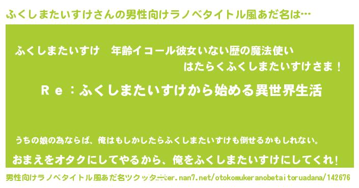 | 女子向けラノベタイトル風あだ名 | 『闇のふくしまたいすけ』 |