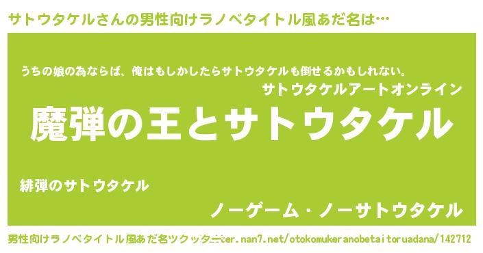 | ヒーロー風カッコイイあだ名 | 『仮面サトダー』『スーパーサトウタケル』 |