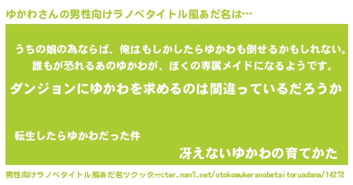 | 女子向けラノベタイトル風あだ名 | 『ゆかわは平凡を望む』『ゆかわの婚約者』 |