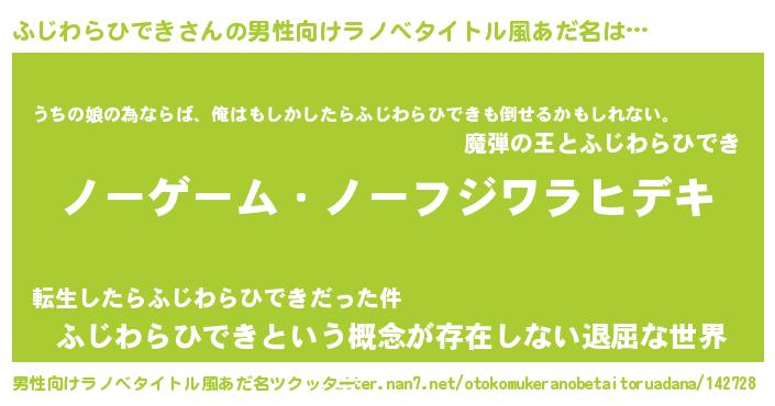 | 女子向けラノベタイトル風あだ名 | 『死神ふじわらひできの再婚』 |