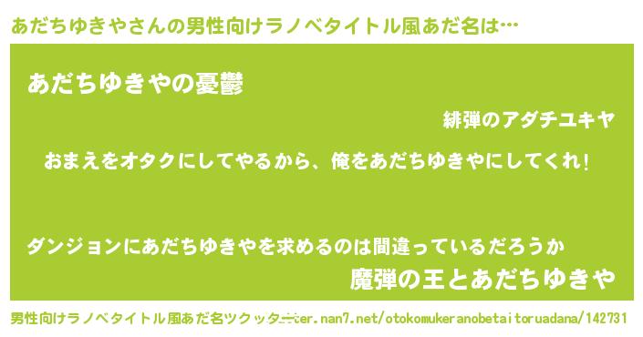 | 女子向けラノベタイトル風あだ名 | 『あだちゆきや恋絵巻』 |