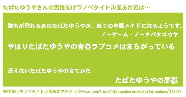 | 女子向けラノベタイトル風あだ名 | 『たばたゆうやの雑貨屋さん』 |