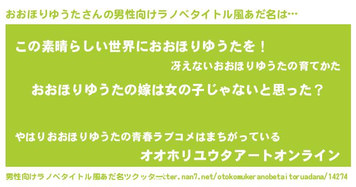| 意味不明あだ名 | 『とにかく怪しいおおほりゆうた』 |