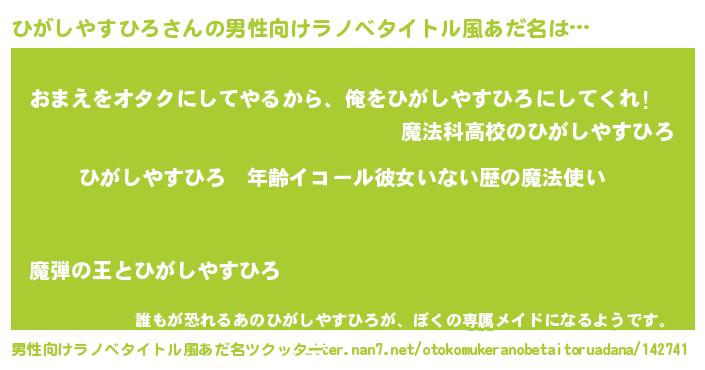 | ヘコむあだ名 | 『ひがしやすひろ(震え声)』『豆乳』 |