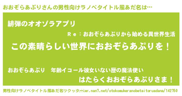 | 意味不明あだ名 | 『住所不定無職おおぞらあぷり(53歳)』 |