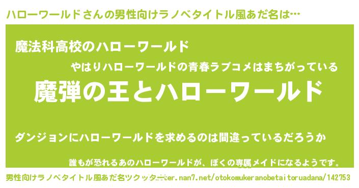 | 意味不明あだ名 | 『住所不定無職ハローワールド(11歳)』 |