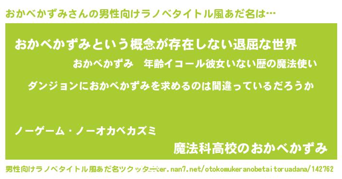 | 女子向けラノベタイトル風あだ名 | 『おかべかずみの卵を拾いまして』 |