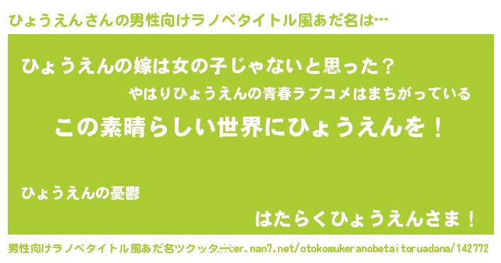 | 意味不明あだ名 | 『住所不定無職ひょうえん(5歳)』 |