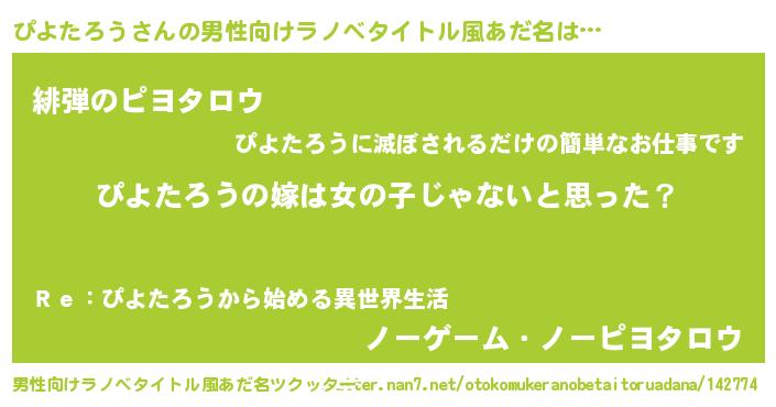 | ヘコむあだ名 | 『ぴよぷりん』『ぴよたろう(震え声)』 |