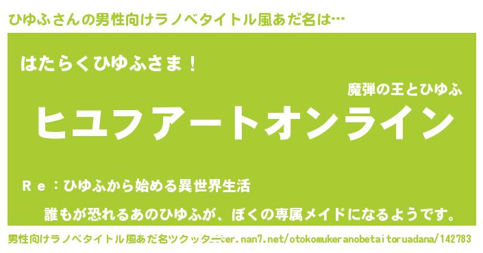 | 女子向けラノベタイトル風あだ名 | 『ひゆふ姫と円卓の騎士』『闇のひゆふ』 |